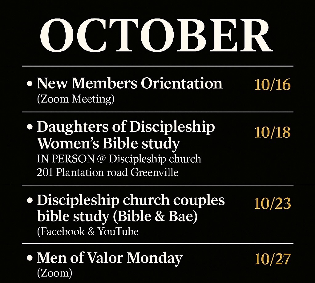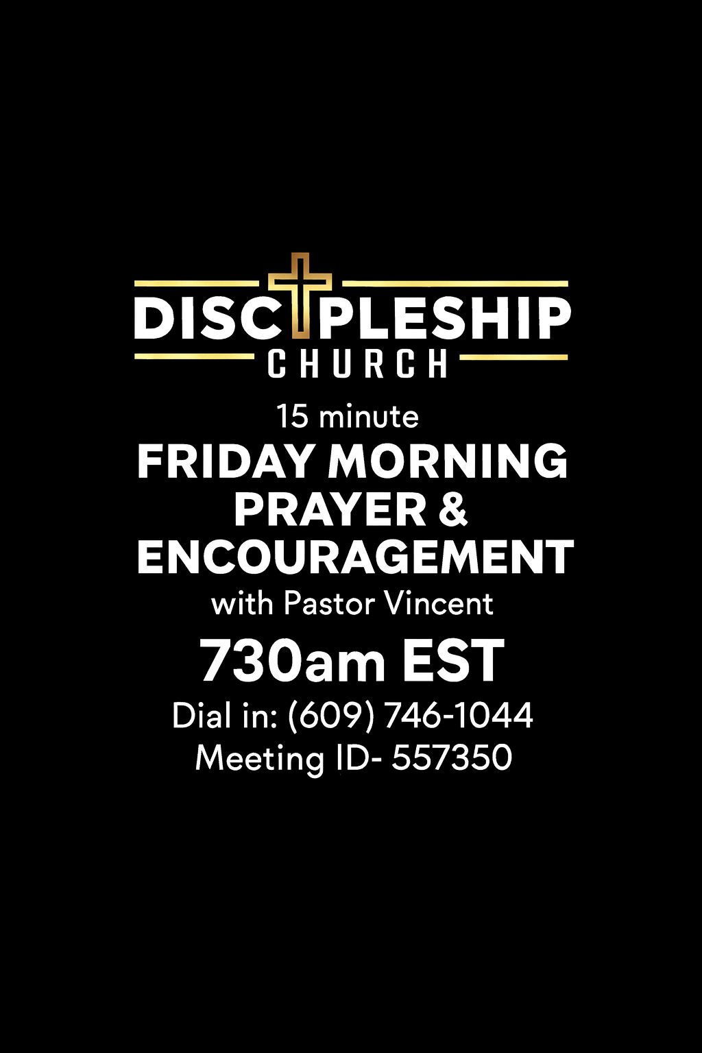 Join Discipleship Church every Friday morning at 7:30 AM (EST) for our Corporate Prayer Call.